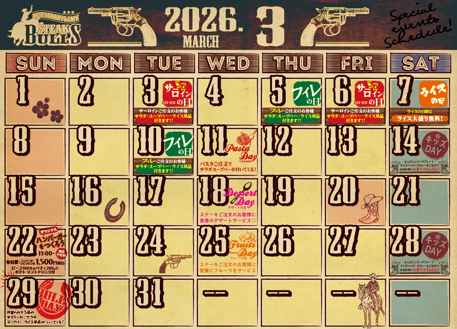 【3月】ステーキブルズ カレンダー
