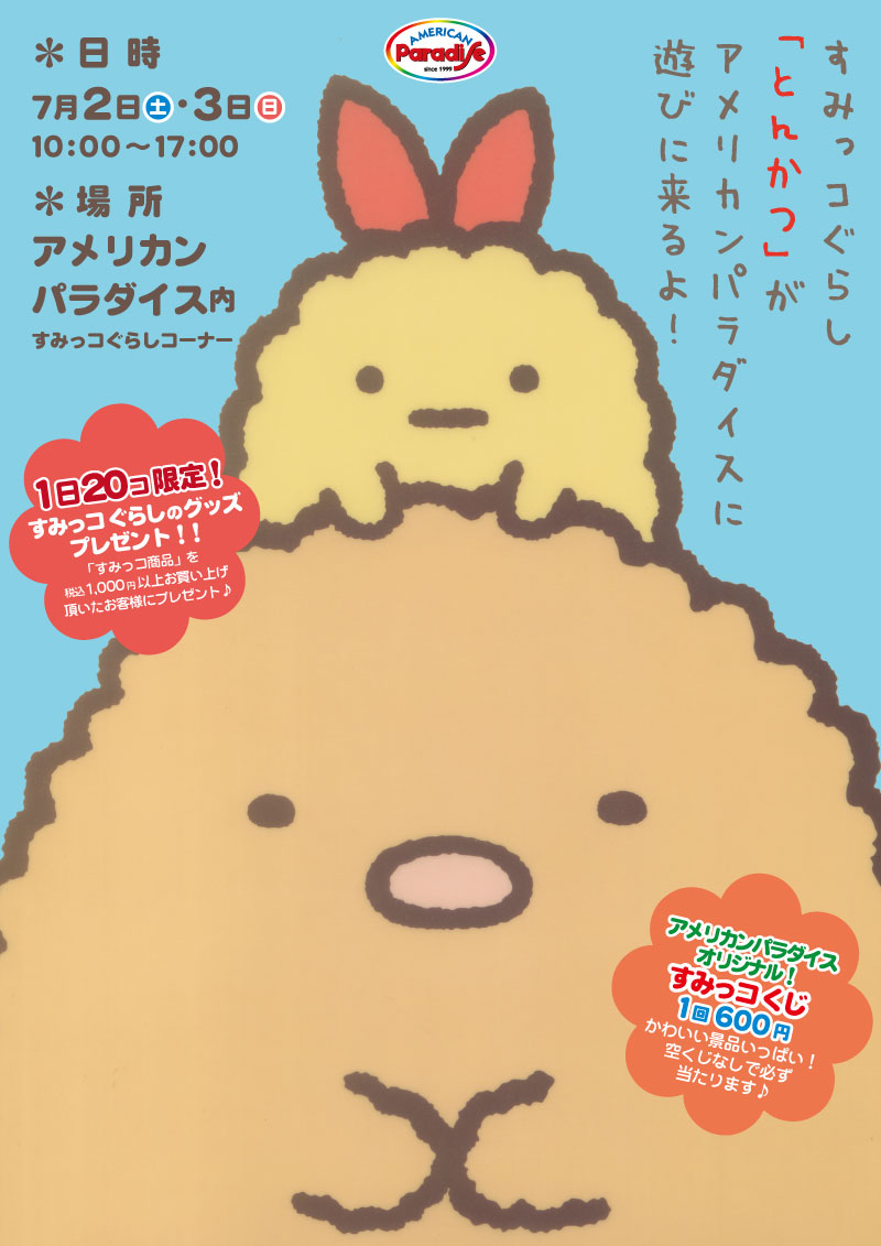 7/2(土)、3(日) すみっコぐらしの"とんかつ"があそびにくるよ!!